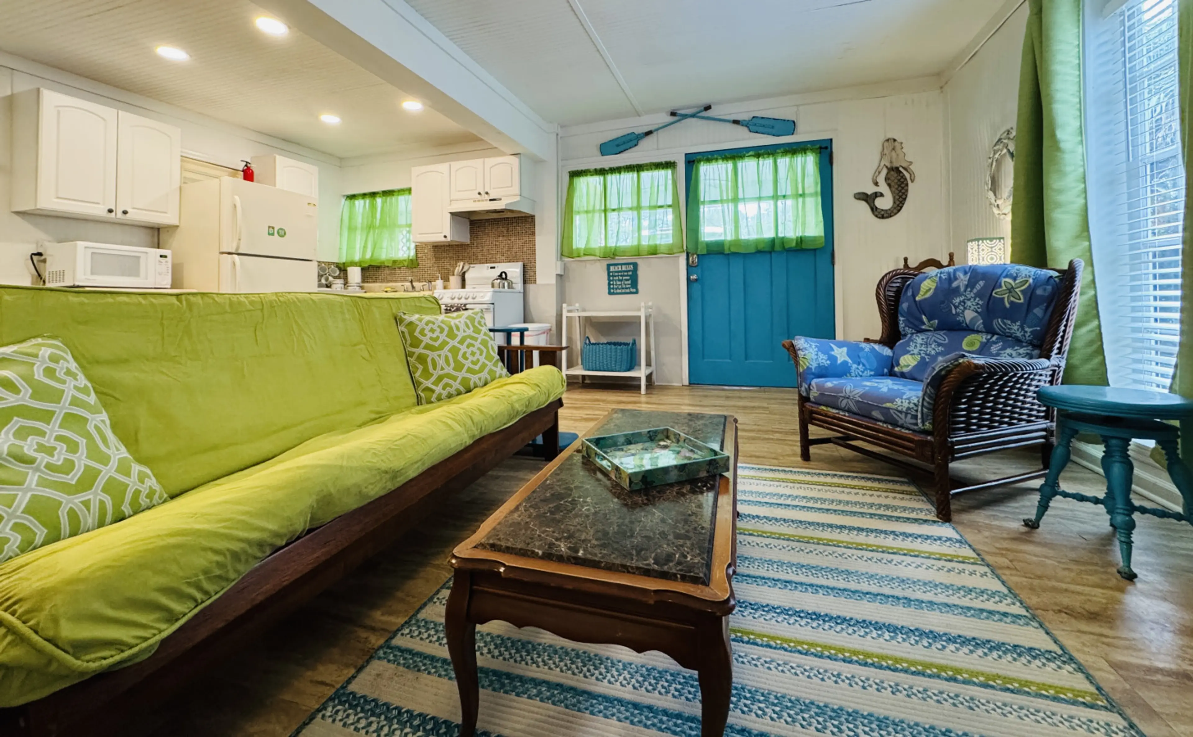 Welcome to One Fish Cottage, a charming Tybee Island studio perfect for couples or small families. This bright open space features a comfy bed, futon, full kitchen, washer/dryer, smart TV, WiFi, and linens. Located on the south end near the pier, shops, dining, and nightlife. Part of The Fish Cottag...